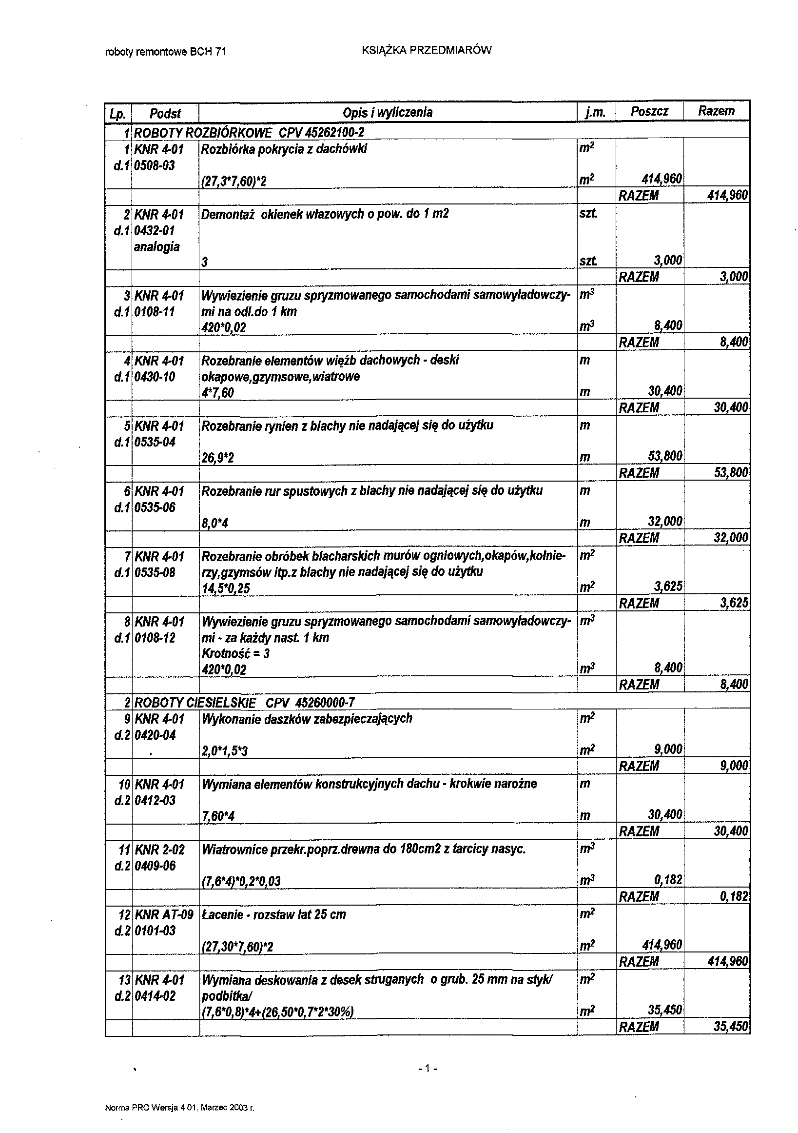 a) Przedmiar robót – załączniki Załącznik 10a przedmiar 71, Załącznik 10b przedmiar 71, Załącznik 10c przedmiar 71 oraz Załącznik 10d STWiORB 71 załącznik nr 10a- 10d do Ogłoszenia o Zamówieniu,
